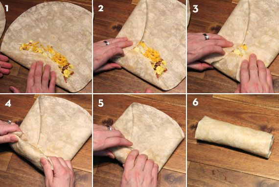 Tortillu zabalíme a necháme asi 10 minut zapéct v troubě, vyhřáté na 180 stupňů. Buritto by správně mělo být na obou koncích zabalené, aby se uvnitř drželo teplo a náplň nevypadávala. Postup, jak správně zabalit burrito naleznete na přilozeném obrázku.